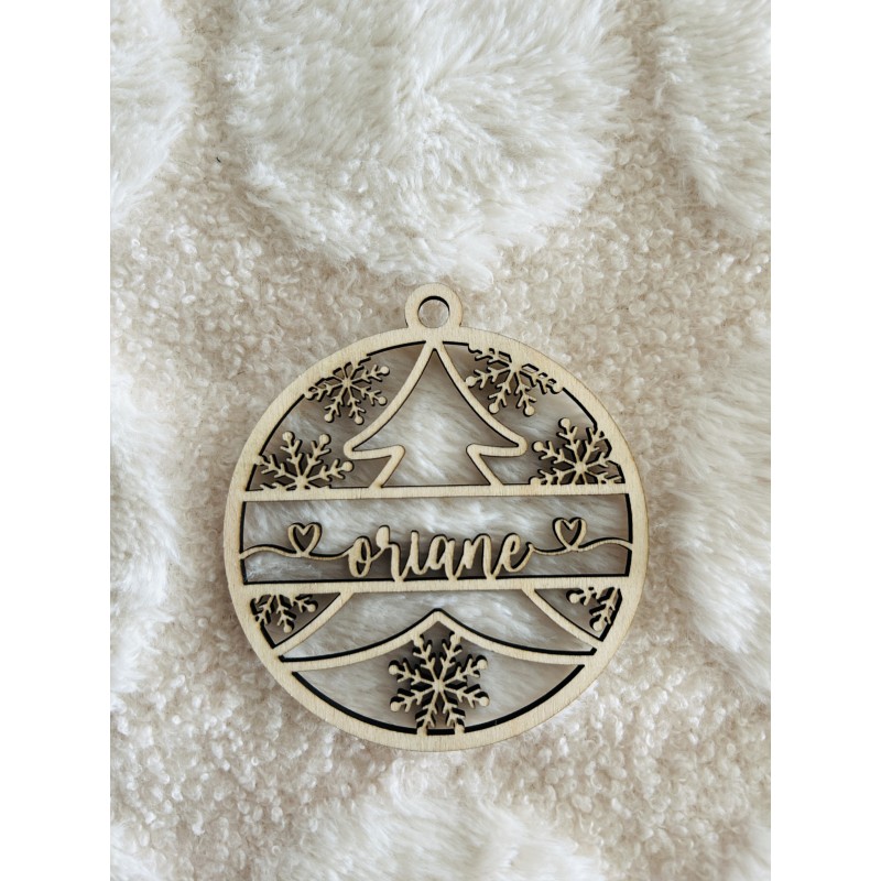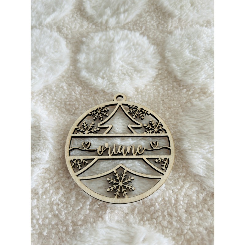 Apportez de la douceur et de la magie à votre sapin avec cette boule de Noël personnalisée en bois découpé ❄️.